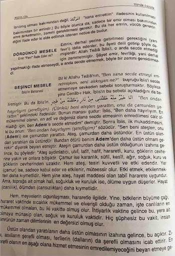Katılımcı: Buraya misâl; ‘secde etmemek’ yerine benzeri olacak ‘isyan etmek’ konulunca daha net anlaşılıyor.