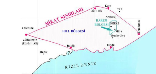 Bu resimlere göre MUTLAKA İHRAMLI OLUNMASI GEREKEN YER, KÂBE VE ÇEVRESİNİ GÖSTEREN BİRİNCİ BÖLGEDİR.